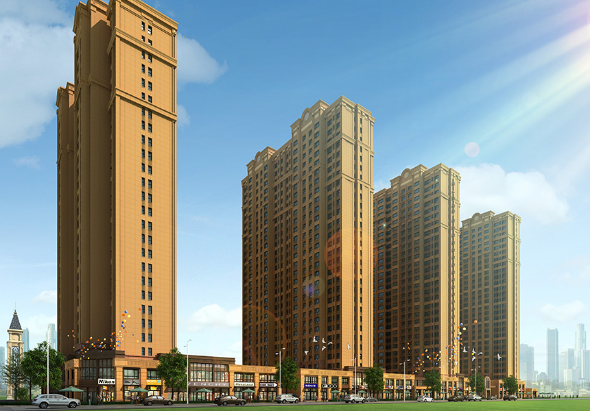 整體小區(qū)建筑采用art-deco建筑風(fēng)格,上海錦江飯店、百老匯、浦東新區(qū)整體建筑風(fēng)格大部分采用都是art-deco風(fēng)格。整體外形莊重,挺拔俊朗,豎向線條簡潔流暢,以精品致敬經(jīng)典,樹立城市中心居住新典范。高層區(qū)外立面為真石漆,整體效果美觀。
