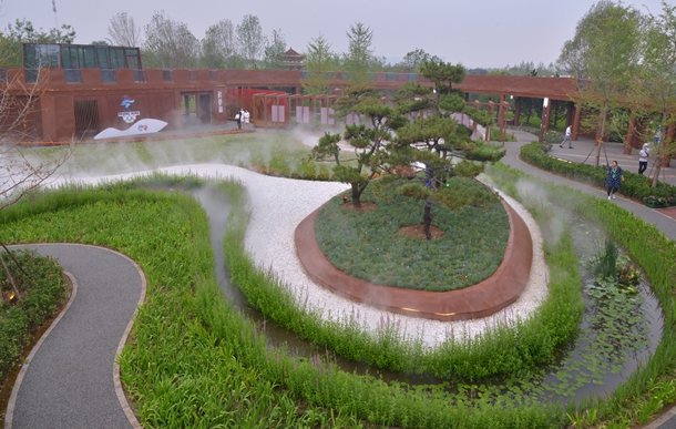 本屆園林博覽會(huì)以生態(tài)修復(fù)、智慧安全和永續(xù)發(fā)展為特色,重點(diǎn)打造了“一臺(tái)、三館、五院、九橋、十八展園”的建筑格局。其中,“一臺(tái)”為暢觀臺(tái),是園博園的制高點(diǎn);“三館”是園林藝術(shù)館、安全實(shí)訓(xùn)館和智慧生活館;“五院”為皇家山水院、蘇州院、唐風(fēng)院、嶺南院、山地院等5組文化濃厚的傳統(tǒng)園林院落;“九橋”指沿水系分布的9座古典園林橋;“十八展園”包括邢臺(tái)園、承德園等13個(gè)城市展園,以及新優(yōu)材料園、智享生活園、童話花雕園、康體植物園、低碳環(huán)保園5大專類展園。